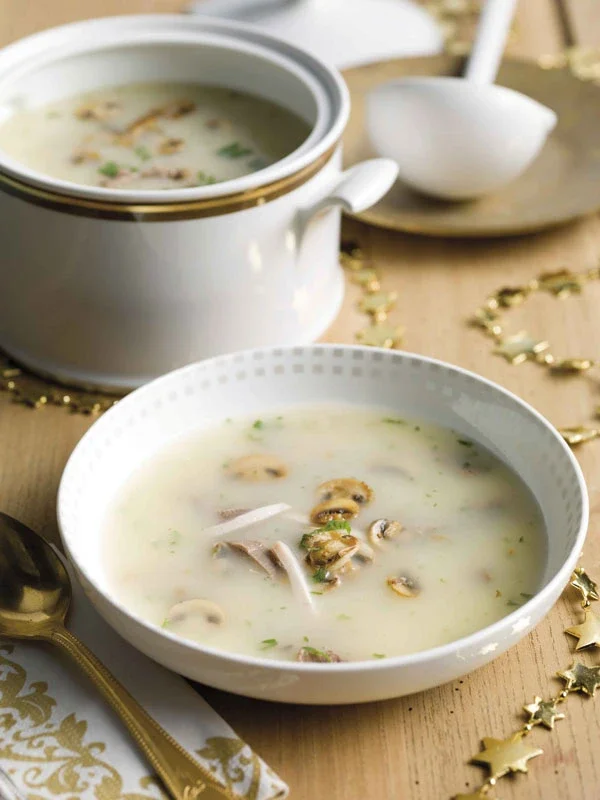 Agnes Sorelsoep is een klassieke, romige kippensoep met een vleugje luxe – perfect om je gasten mee te verwennen! Dit gerecht, genoemd naar de geliefde van de Franse koning Karel VII, brengt met zijn fluweelzachte structuur en rijke smaak een vleugje koninklijke allure naar tafel. Deze royale soep verdient zeker een plekje op je feestmenu!
